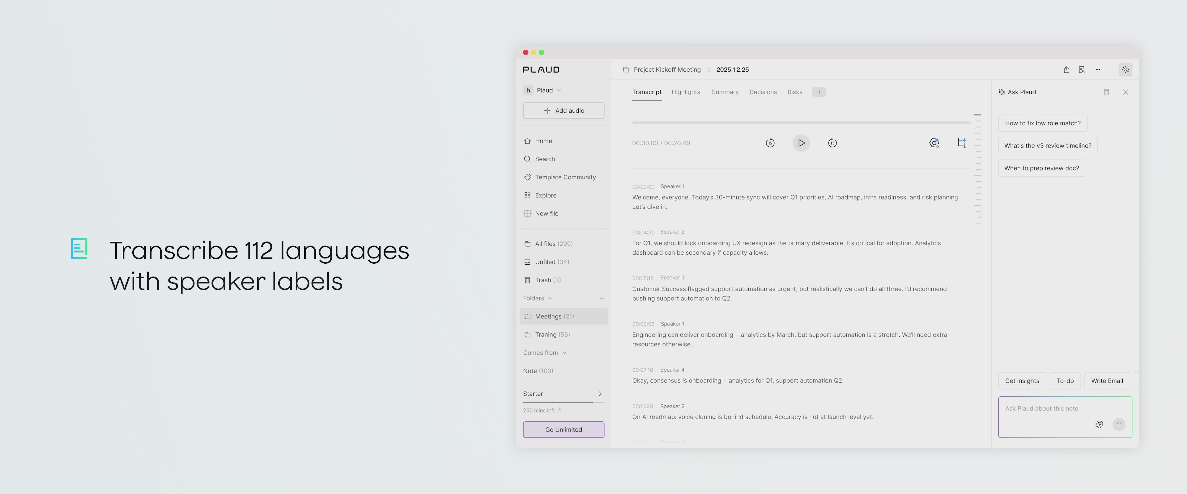 - Ask Plaud: Turn every question into a trustworthy answer.