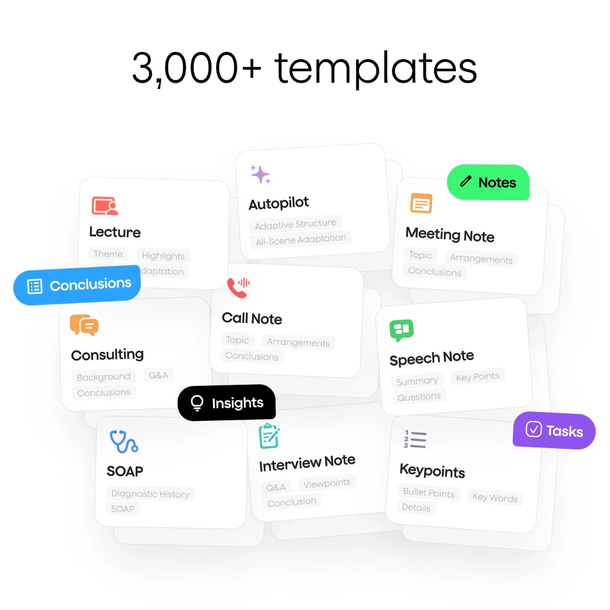 - 10,000+ summary templates: Professional summaries tailored for meetings, interviews, calls, and more.